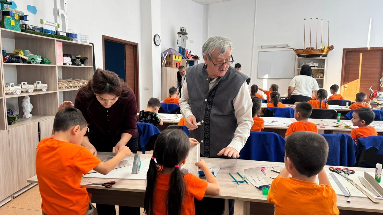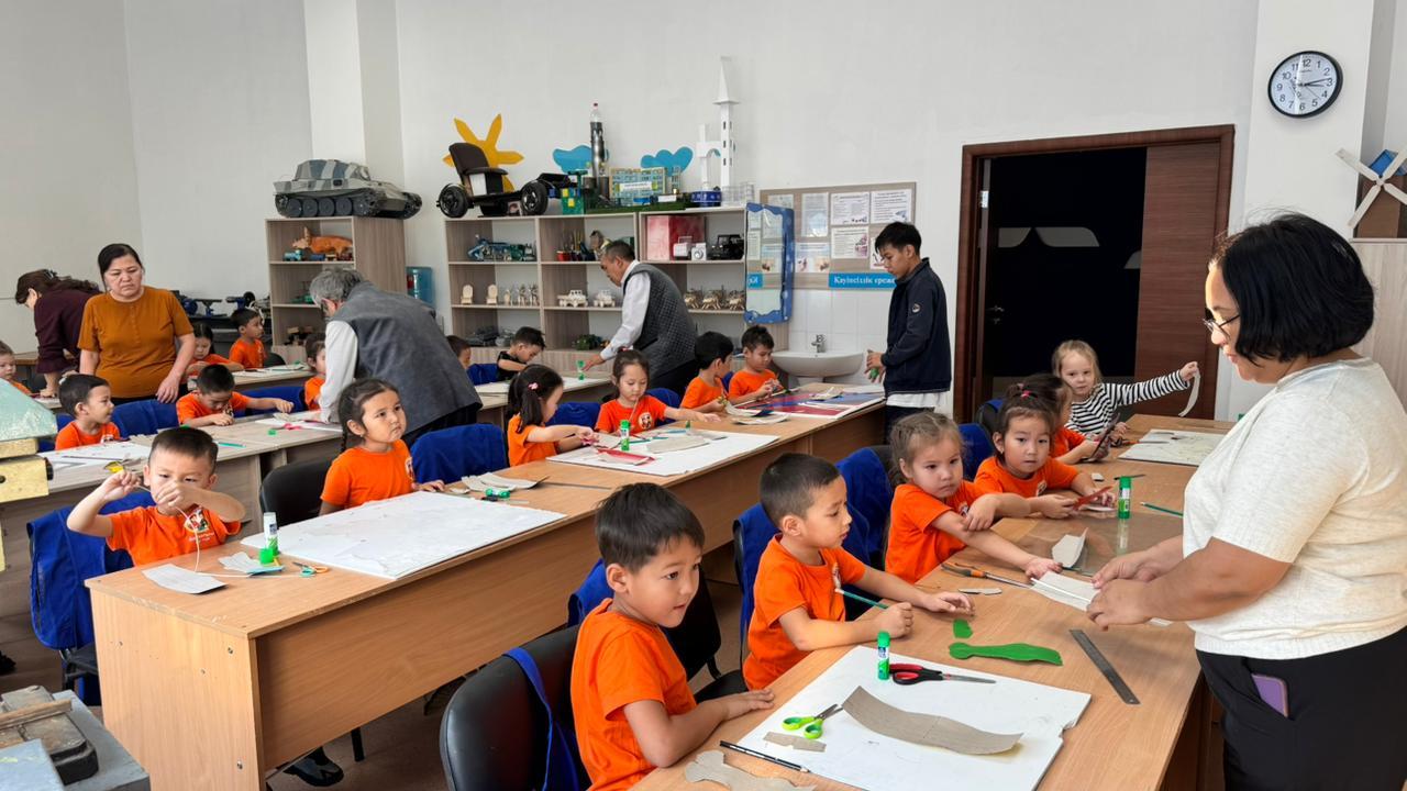 Әл-Фараби атындағы Оқушылар сарайына №67 «Шұғыла» балабақшасының тәрбиеленушілері арнайы келіп, «Ұшу, қалықтау, жүзу» интеграцияланған эксперименталды алаң бағдарламасы аясында алғашқы техникалық модельдеу үйірмесіне қатысты.
