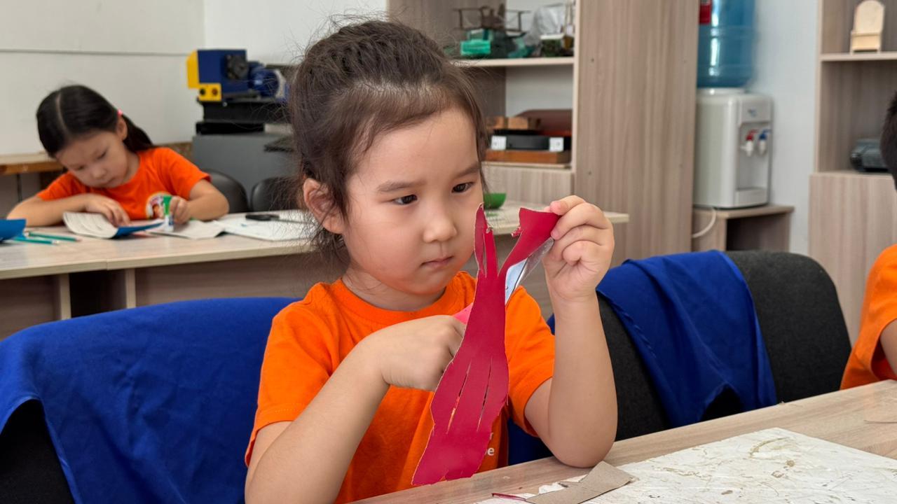 Сабақ барысында балалар «Жеңіл ұшақ жасау» тақырыбында қызықты шеберлік сабағын орындап, қағаздан ұшақ құрастыруды үйренді. Осындай үйірмелер балалардың кішкентай кезінен бастап креативтілігін, логикалық ойлауын және жан-жақты дамуын арттыруға бағытталған.